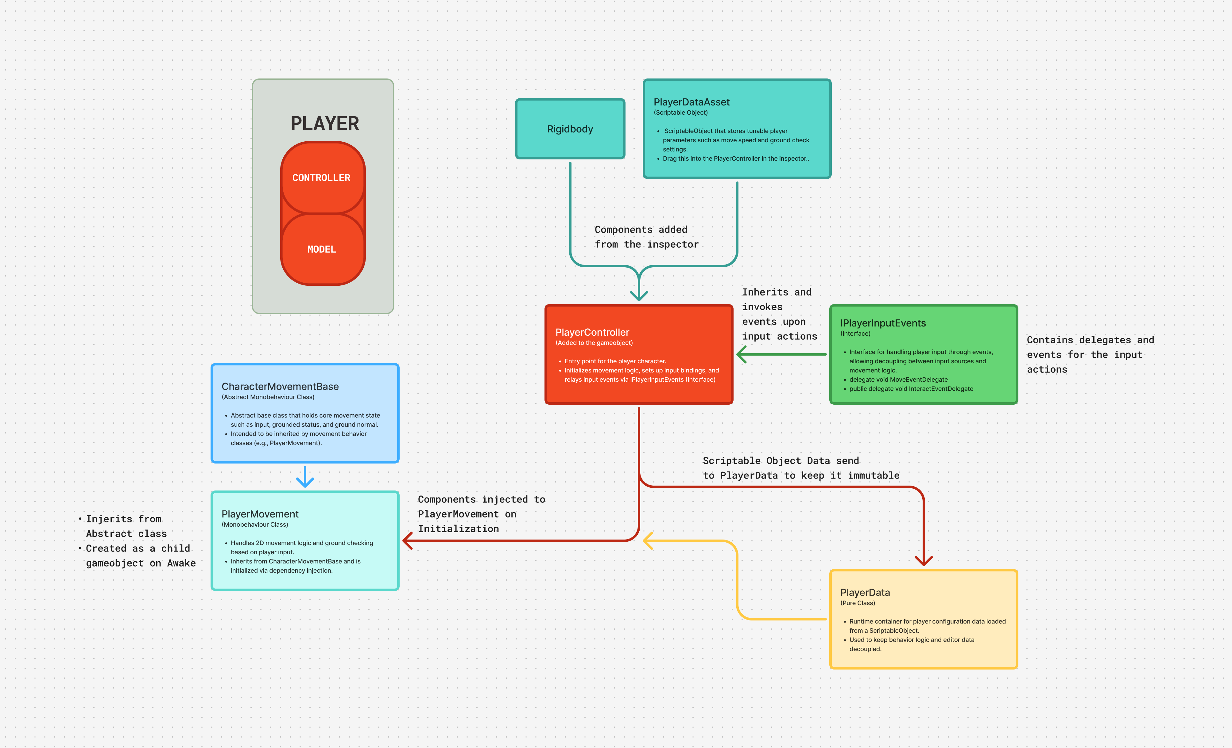 A modular and extensible 2D character movement framework for Unity, designed to streamline the setup of basic movement mechanics. This system emphasizes clean architecture, separation of concerns, and scalability.